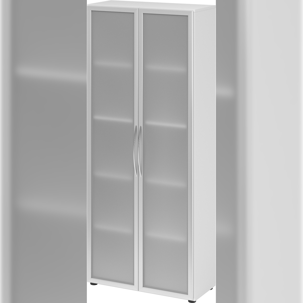 bümö Mehrzweckschrank 80cm breit, Aktenschrank o. Schuhschrank hoch, Milchglastüren Schrank, Küchenschrank in Weiß/Silber aus Holz, Vorratsschrank &