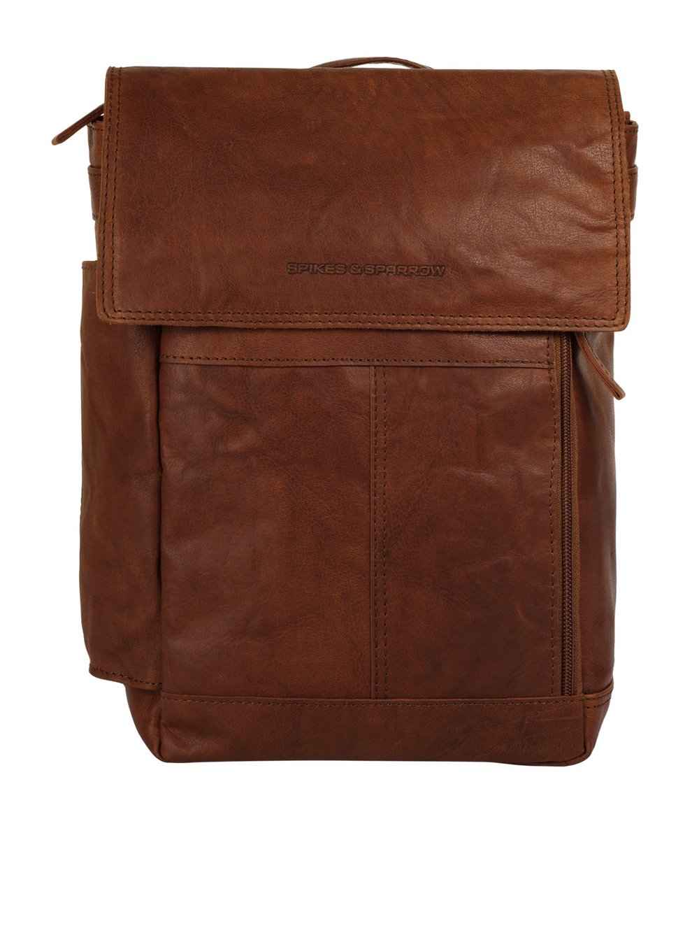 Umhängetasche SPIKES & SPARROW, Damen, Gr. B/H/T: 22cm x 20cm x 4cm onesize, braun (cognac), Leder, leicht glänzend, unifarben, Taschen Umhängetasche, echt Leder