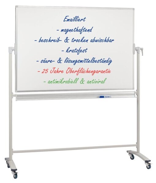 Franken Stativ-Drehtafel 150 x 100 cm, antimikrobiell, emailliert, weiß, silbereloxierter Aluminiumrahmen