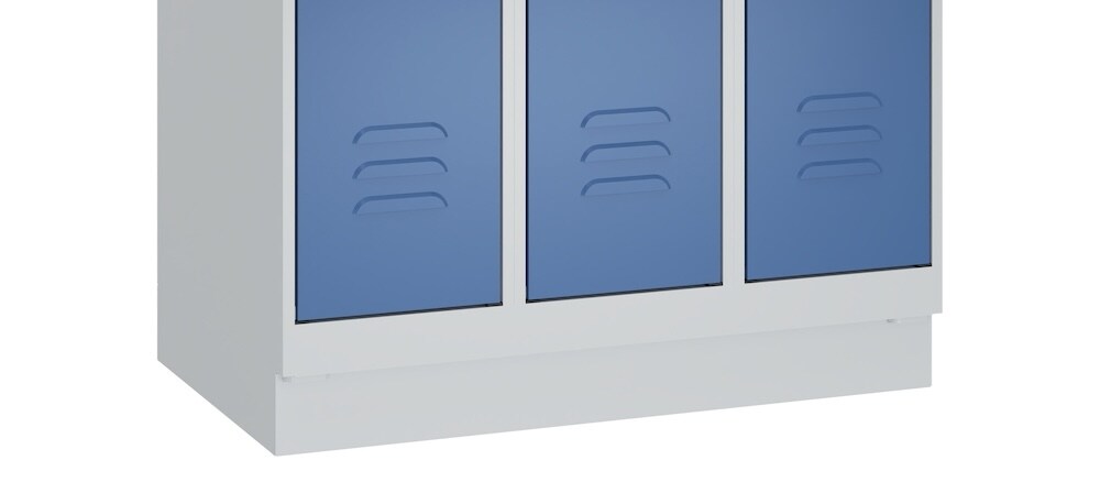 C+P Z-Spind Classic PLUS, Sockel, 4 Abteile, HxBxT 195x80x50cm, Sicherheitsdrehriegel, Hellgrau/Rot von PROREGAL