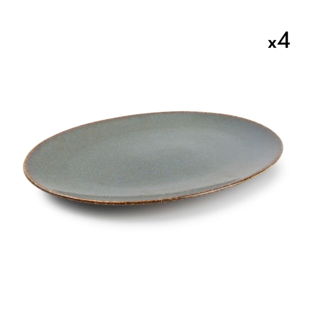 Lot de 4 assiettes vert en porcelaine 30x21cm