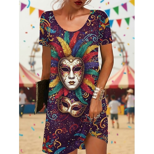 Per donna Mini Abito Vestito Casual Vestito T-Shirt Moda Moderno Quotidiano All'aperto Vacanza Vestibilità regolare Grafico Manica Corta Girocollo Nero Viola chiaro Viola Viola scuro Estate Primavera