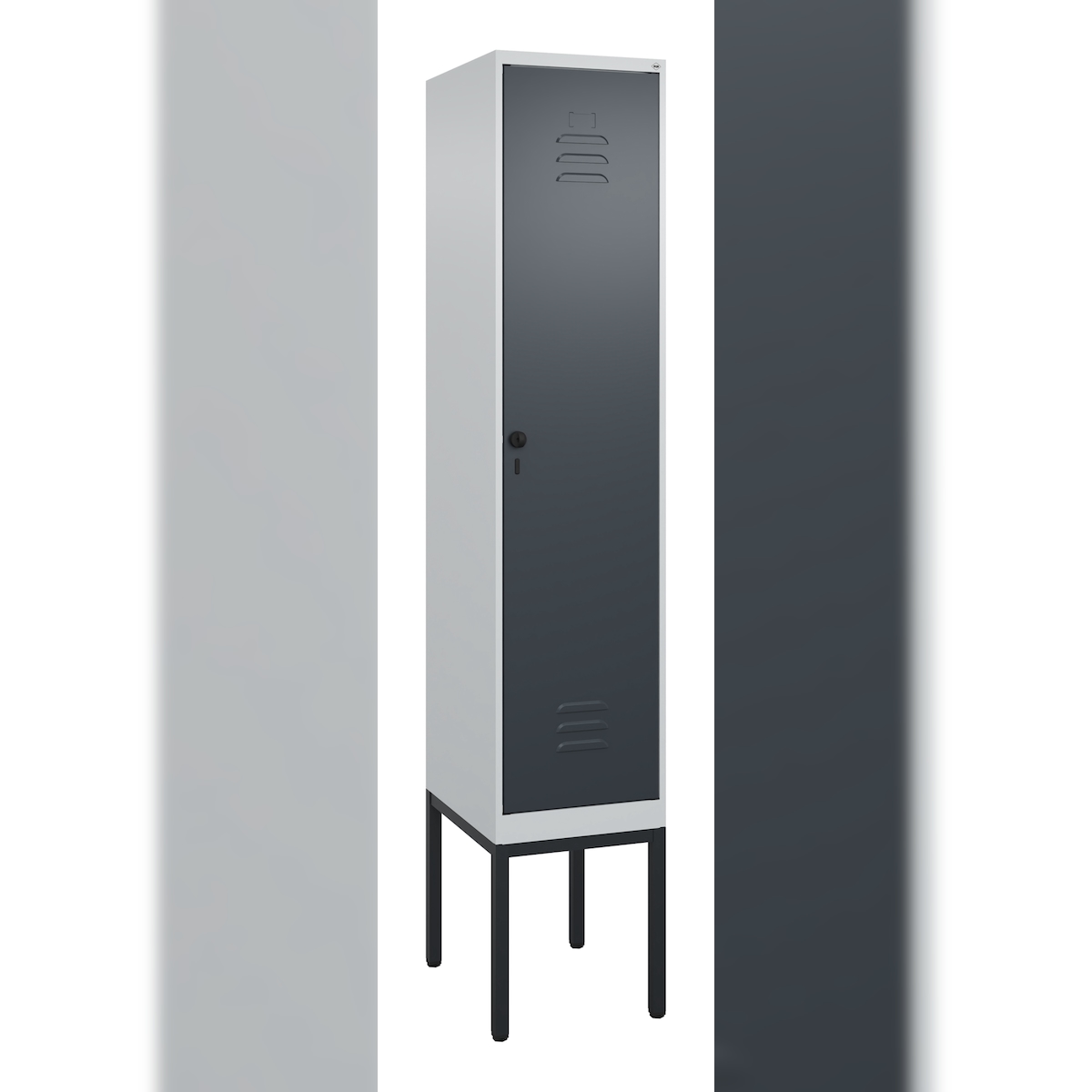 C+P Spind Classic PLUS, Gestell, 1 Abteil, HxBxT 212x40x50cm, Sicherheitsdrehriegel, Hellgrau/Anthrazit von PROREGAL