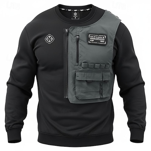 Per uomo Maglia Nero Girocollo Blocco di colori Patchwork Cerniera Sport Outdoor Quotidiano Ferie Poliestere Streetwear Essenziale Casual Primavera Autunno Abbigliamento Felpe con cappuccio Felpe