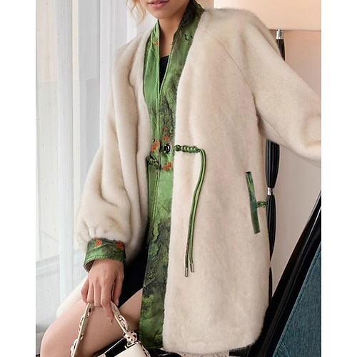 Per donna Cappotto Invernale Cappotto in Pelliccia Sintetica Caldo Confortevole Patchwork Tasca Bottoni Casual Blocco di colori Vacanza Uscire Weekend Lungo Scollo a V Vestibilità comoda Manica Lunga