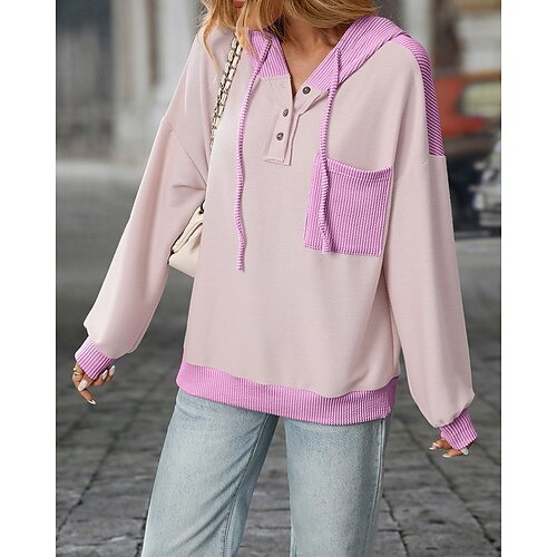 Per donna Felpa pullover Felpe con cappuccio casual Coulisse con tasche Manica Lunga Top Athleisure Blocco di colori All'aperto Vacanze abbigliamento sportivo Abbigliamento sportivo Rosa Blu Viola