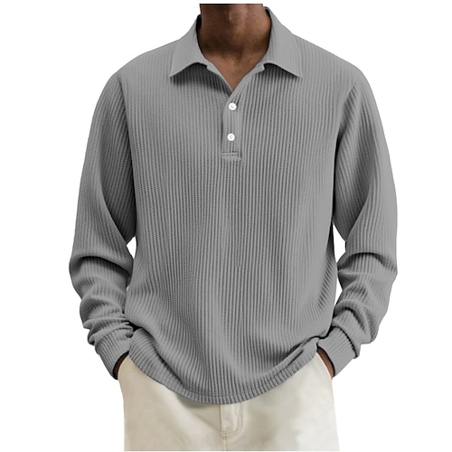 Per uomo Geometrico Blocco di colori Maglia Henley a nido d'ape Stile casual Stile classico Manica Lunga Moda Designer Essenziale Casuale Quotidiano All'aperto Autunno Inverno Grigio Rosa Verde
