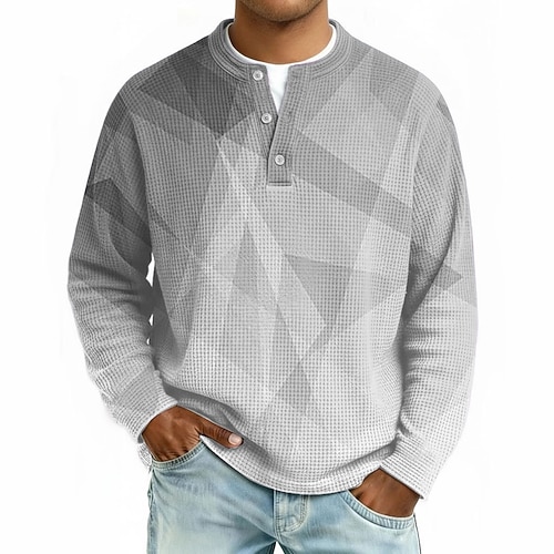 Per uomo Grafico Geometrico Blocco di colori Maglia Henley a nido d'ape Stile casual Stile classico Manica Lunga Moda Designer Essenziale Casuale Quotidiano All'aperto Primavera Autunno Tutte le