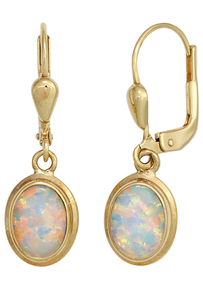 Paar Ohrhänger JOBO, gold (gelbgold 333), Ohrringe, Damen, Gelbgold 333, oval 333 Gold mit synthetischem Opalen