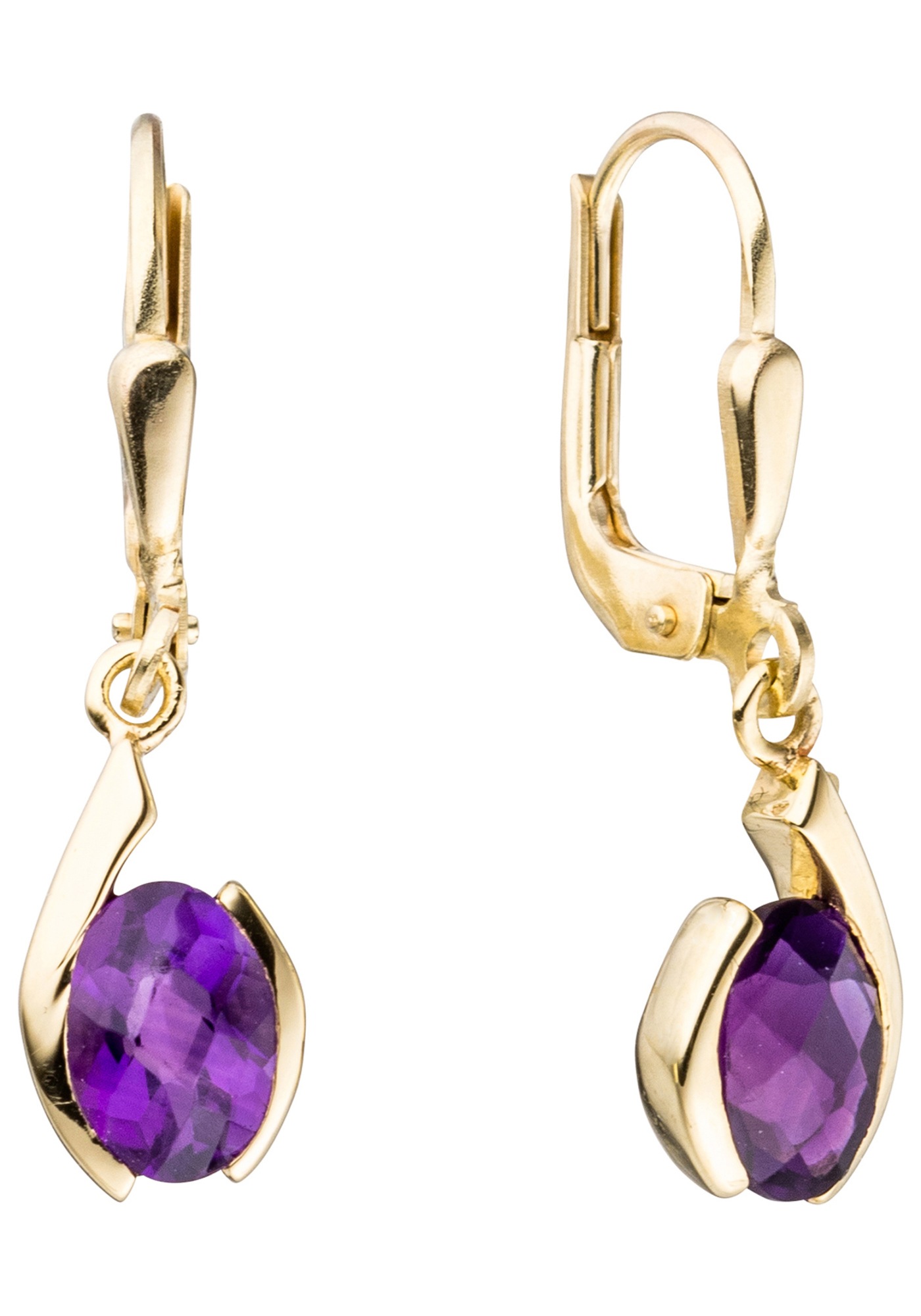 Paar Ohrhänger JOBO, gold (gelbgold 333), Ohrringe, Damen, Gelbgold 333, 333 Gold mit Amethyst