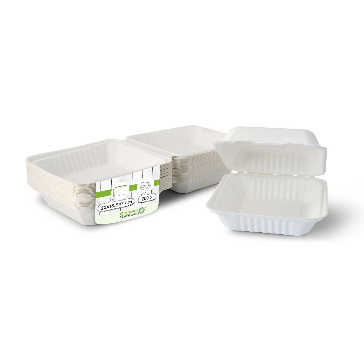 greenbox - Take-away Boxen aus Zuckerrohr 22 x 18,5 x 7 cm, rechteckig, 200 St.