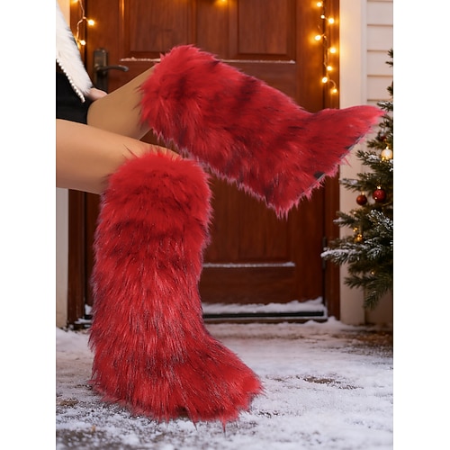 stivali alti fino al ginocchio in pelliccia sintetica da donna – stampa in bianco e nero, comode calzature invernali per un freddo all'avanguardia e uno stile vacanziero