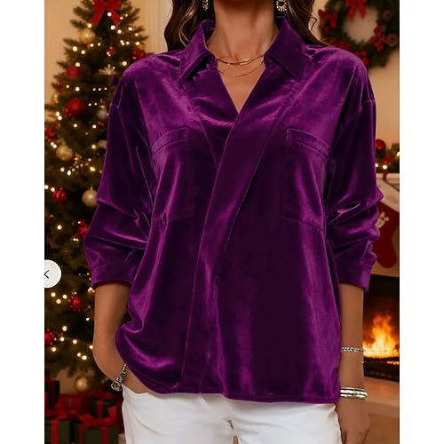 Per donna Blusa Semplice Elegante Vintage Manica Lunga Colletto a Camicia Top Regolari Quotidiano Ferie Uscire Patchwork Tasca Blu Nero Rosso Viola Verde Primavera Autunno Inverno