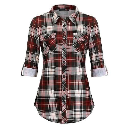 Per donna Blusa Plaid Elegante Quotidiano Casual Manica Lunga Collo Alto Top lunghi Quotidiano Ferie Uscire Bottoni Bianco Rosso Blu Verde Cachi Primavera Autunno