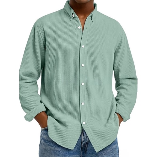 Per uomo Camicia Camicia casual Camicia di Velluto a Coste Camicia con Bottoni Blu Nero Bianco Verde chiaro Rosso Manica Lunga Collo ripiegato Casuale Ufficio / Carriera Caldo Abbigliamento Poliestere