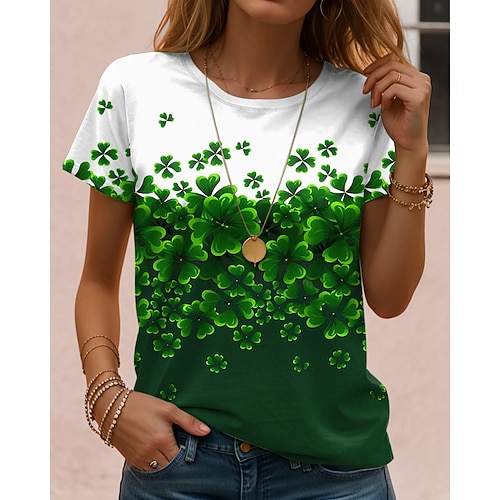 Maglietta da donna per il giorno di San Patrizio grafica trifoglio vintage elegante classico manica corta colletto rotondo tops regolari stampa quotidiana nera bianca rosa estate primavera