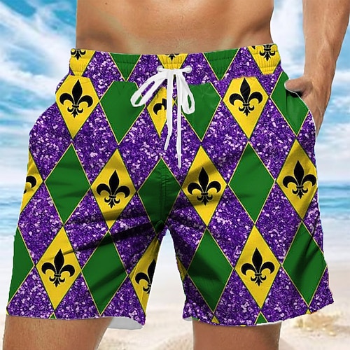 Martedì grasso Per uomo Rombo Carnevale Fleur de Lis del Martedì Grasso Costumi da bagno Pantaloncini da mare Pantaloncini da Surf Misura del girovita medio Moda Casual Feste Ferie Tasche Laterali