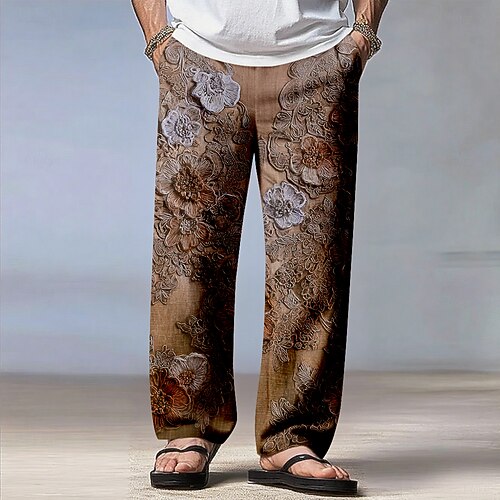 Per uomo Stampa Floreale Fiori Pantaloni Pantaloni casual Misura del girovita medio Vita elastica con coulisse Stile Boho Vintage Retrò All'aperto Vacanza Pantaloni a gamba dritta Primavera Autunno