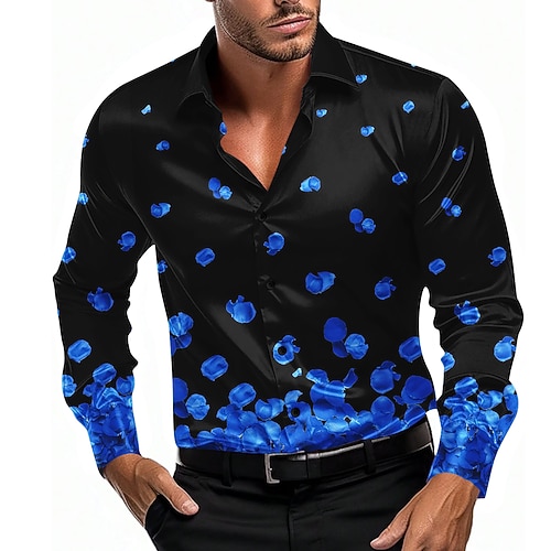 Per uomo Stampa Floreale Petali Fiori Camicia Camicia in raso Camicia elegante Manica Lunga Moda Casual Vacanza Abbigliamento Quotidiano Estate Primavera Autunno Collo ripiegato Stampa 3D Camicie con