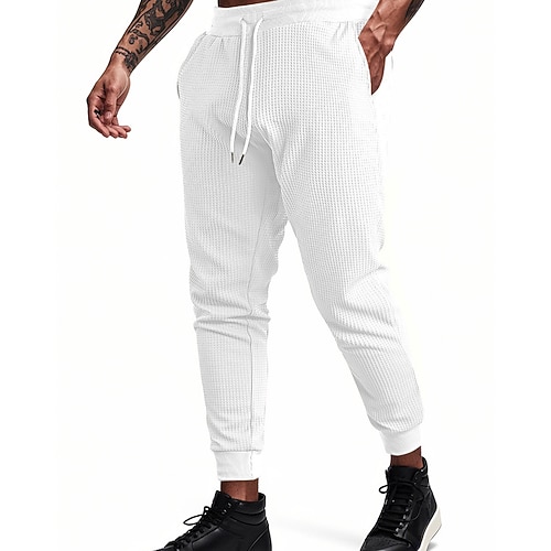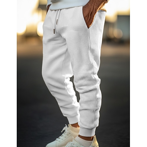 Per uomo Nido d'ape Pantaloni da tuta Joggers Pantaloni Pantaloni casual Coulisse Tasca Frontale Semplice Comodità Lunghezza intera All'aperto Casa Quotidiano Moda Streetwear Nero Bianco Elasticizzato