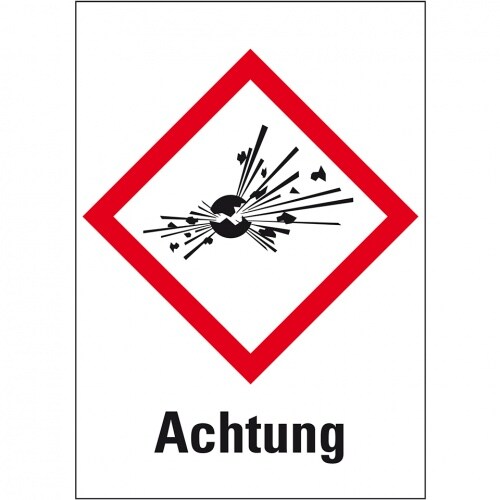 König Werbeanlagen Dreifke® Aufkleber I Gefahrensymbol Explodierende Bombe GHS 01, Achtung, Folie, 37x52mm, 6/Bogen, GHS-Verordnung