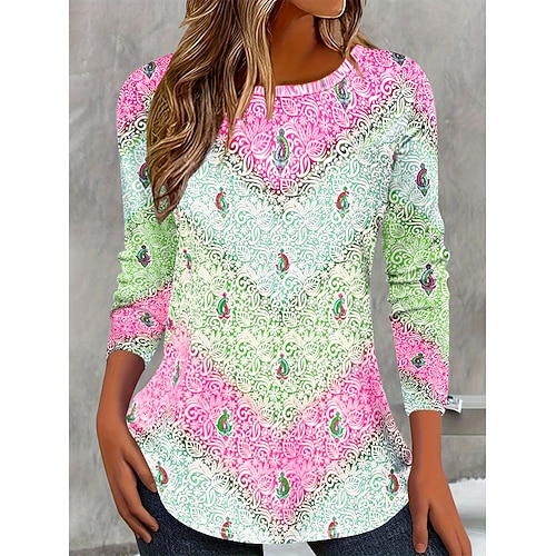 Per donna Maglietta Grafico Geometrico Astratto Vintage Moda Elegante Manica Lunga Girocollo Top Regolari Quotidiano Weekend Stampato Rosa Primavera Autunno Inverno