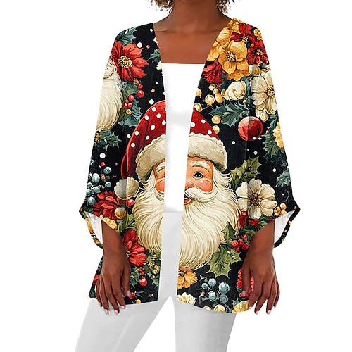 Natale Per donna Camicia Blusa Top Eleganti Grafico Babbo Natale Albero di Natale Elegante Vintage Carino Manica Lunga Asimmetrico Top Regolari Quotidiano Lavoro Ferie Arricciato Stampato Drappeggiato