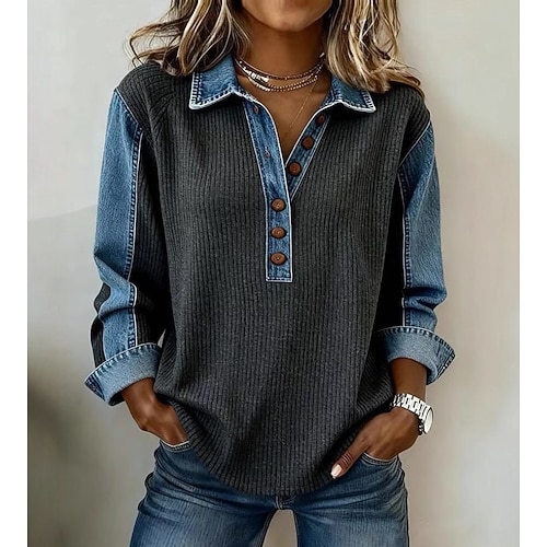 Per donna Tunica Vintage Elegante Manica Lunga Top Regolari Nero Grigio scuro Estate Primavera