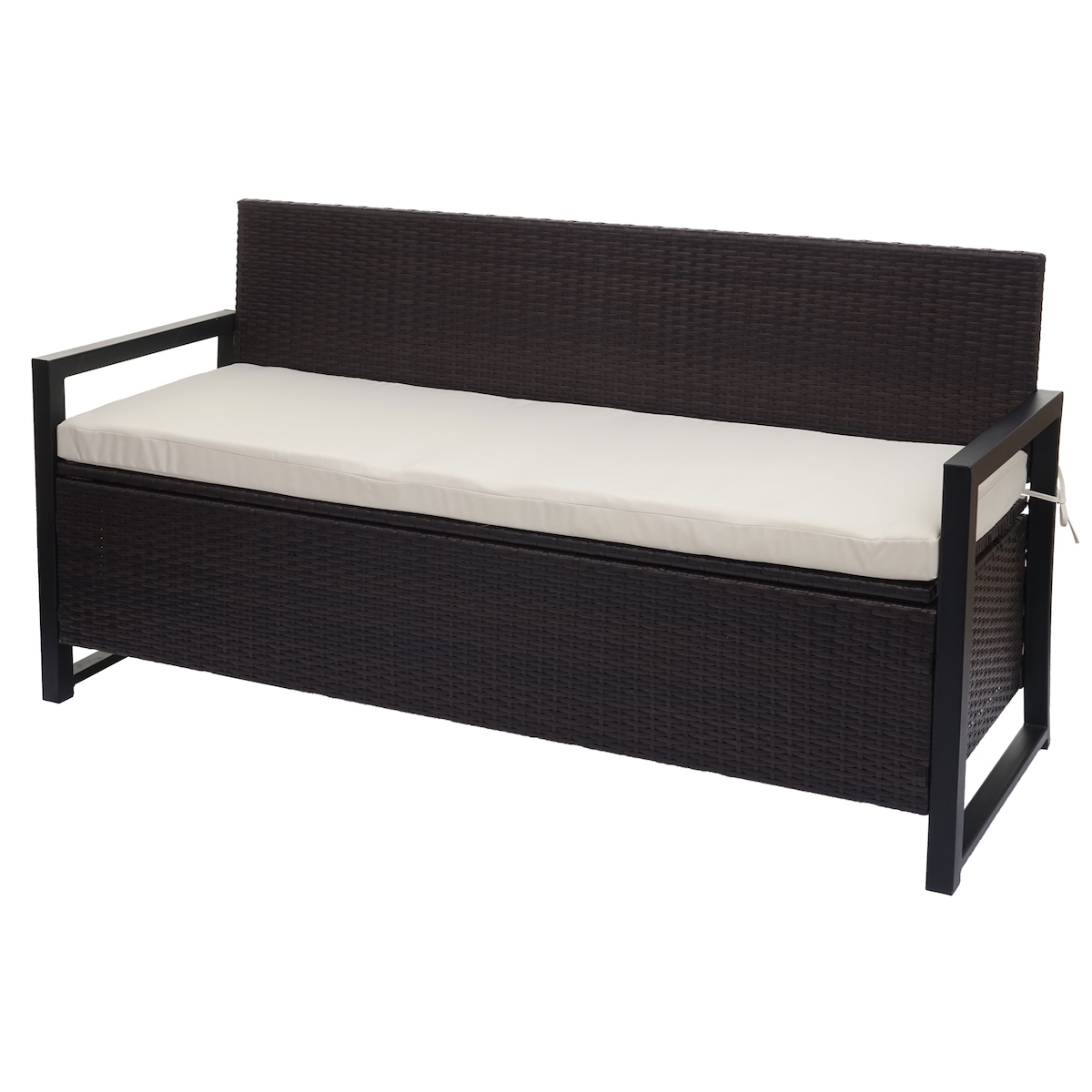 Mendler Poly-Rattan 3er Sitzbank HWC-F39, Gartenbank Truhenbank, Staufach Aufbewahrung Sitzkissen ~ braun, Kissen creme