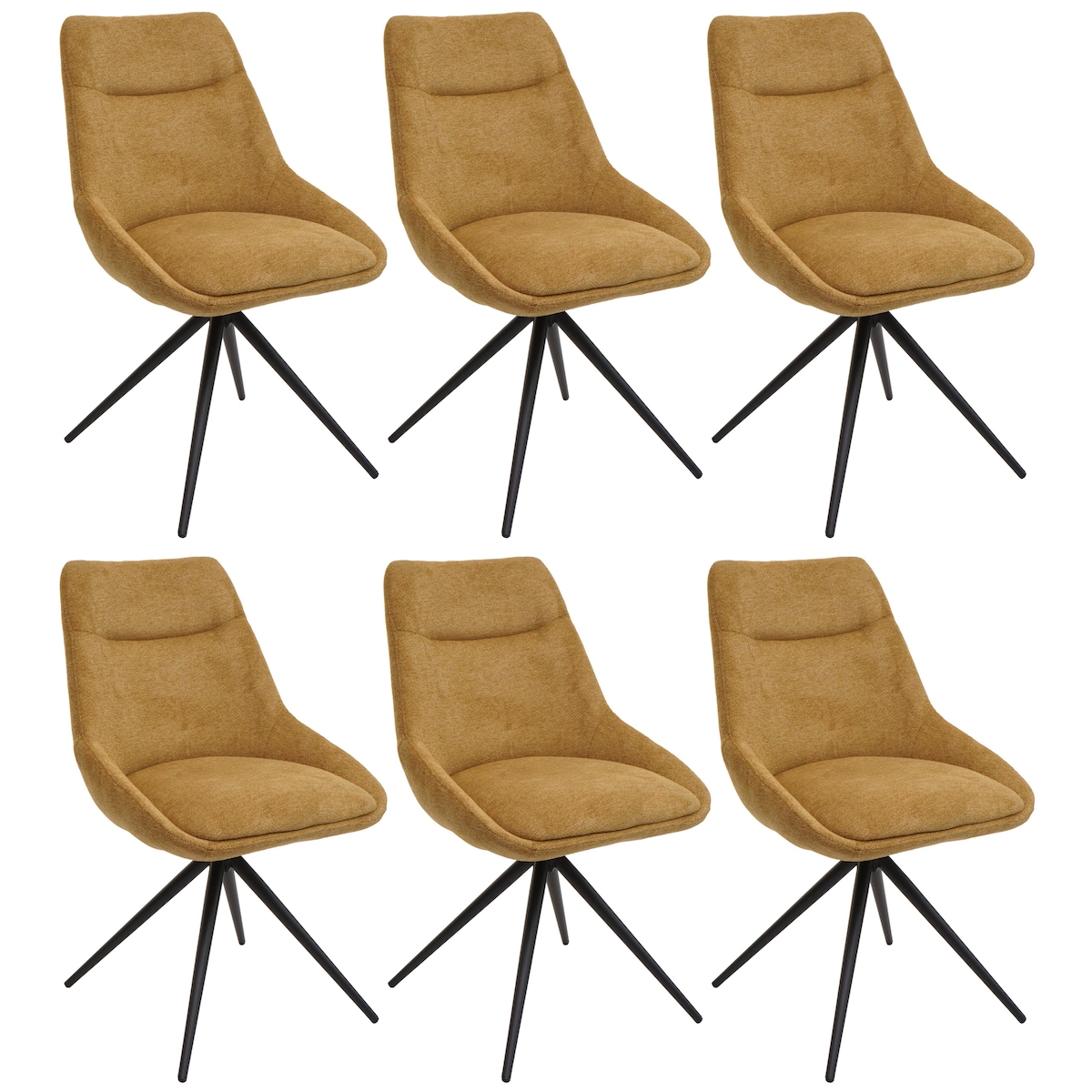 Mendler 6er-Set Esszimmerstuhl HWC-M65, Küchenstuhl Lehnstuhl Stuhl, drehbar Auto-Position Metall Stoff/Textil ~ senfgelb