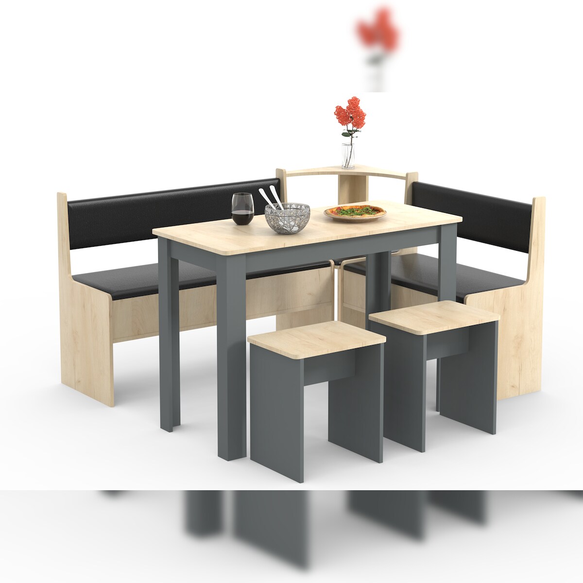 VCM Essgruppe Esal Anthrazit / Honig-Eiche H. 80 x B. 153 x T. 153 cm