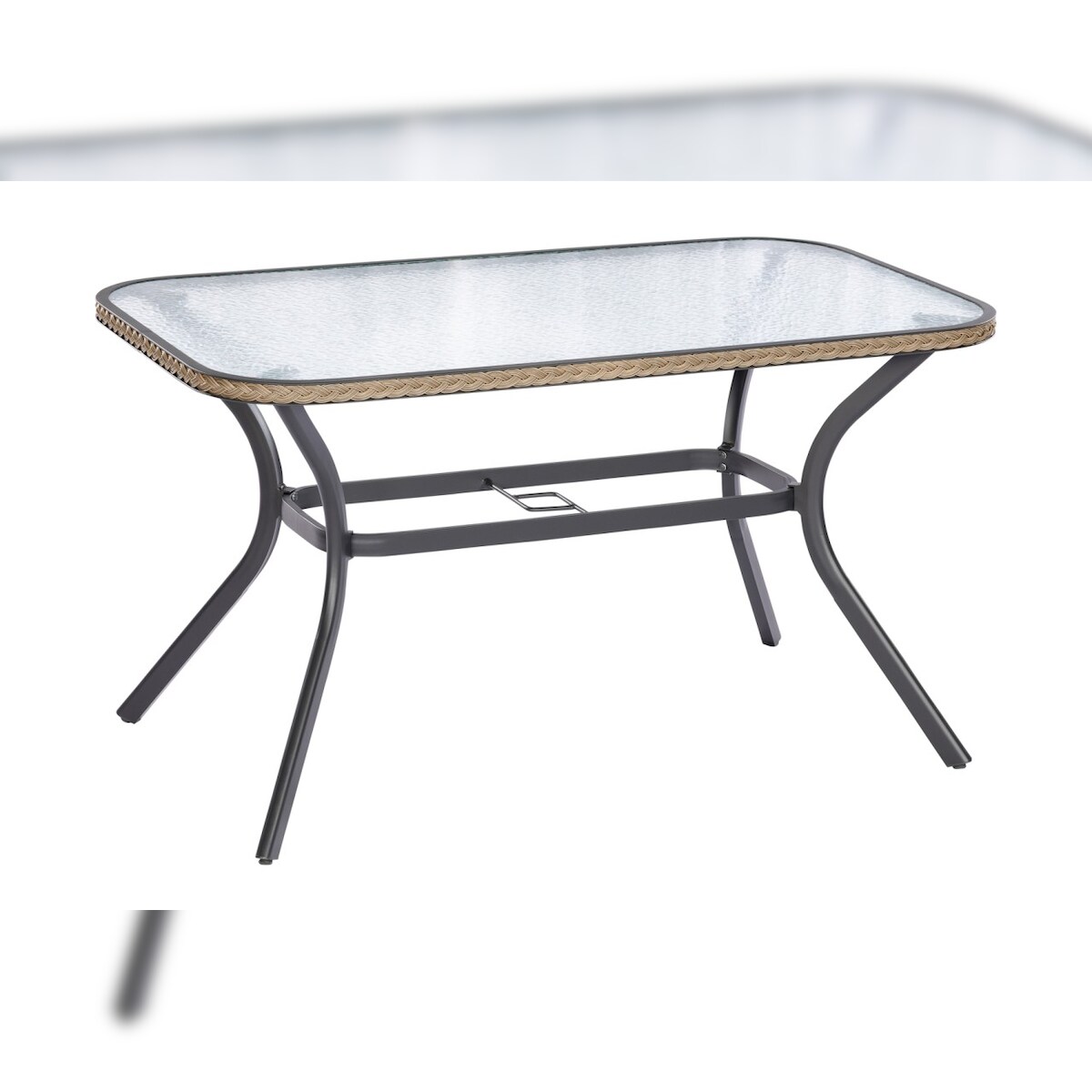 Merxx Ravenna Tisch 150 x 85 cmgraphit/natur. matte GlasplatteAluminiumgestell mit Kunststoffgeflecht