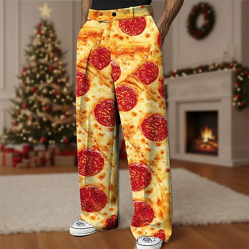 Per uomo Illusione ottica Alimenti Pizza Pantaloni Pantaloni Eleganti Pantaloni da Abito Misura del girovita medio Divertente All'aperto Casuale Ferie Pantaloni eleganti con vestibilità comoda e