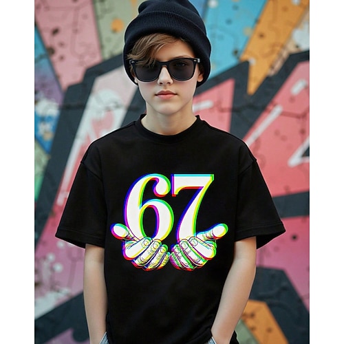 Unisex Ragazzi 3D Grafico Gergo divertente 67 Maglietta Manica Corta Stampa 3D Estate Primavera Sport Moda Streetwear Bambini 4-12 Anni Girocollo All'aperto Casuale Quotidiano Vestibilità regolare