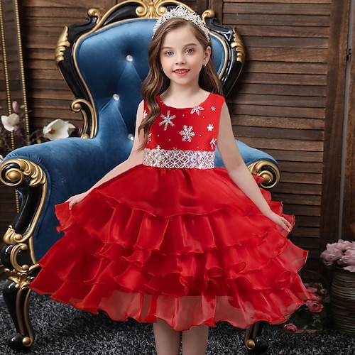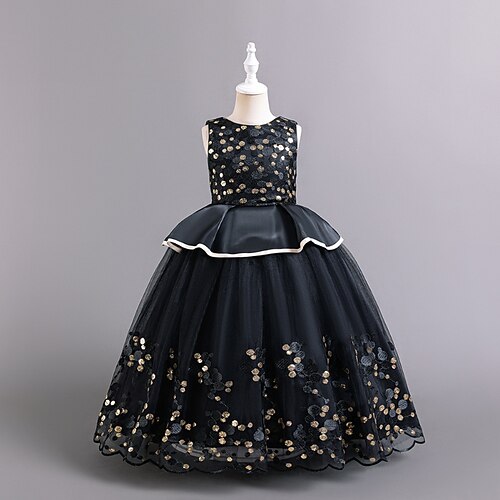 Abito da damigella d'onore bambina Ragazze Abito formale Abiti da sposa Balli di fine anno Feste Matrimonio Elegante Moda Adorabile Paillettes Patchwork Floreale Senza Maniche Girocollo Blu Rosso