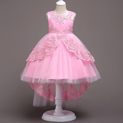 Abito da damigella d'onore bambina Ragazze Abito formale Abiti da sposa Feste Matrimonio Formale Elegante Moda Adorabile Abito per la Prima Comunione Pizzo Patchwork Floreale Senza Maniche Girocollo