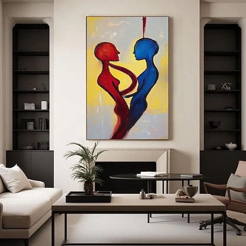 dipinto a mano originale coppia di amanti dipinto a olio su tela grande dipinto a olio arte murale dipinto astratto dipinto blu rosso dipinto personalizzato decorazione da parete per soggiorno