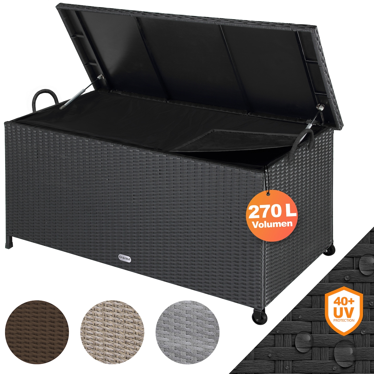 Casaria Auflagenbox Poly Rattan Rollbar Garten Box Schwarz
