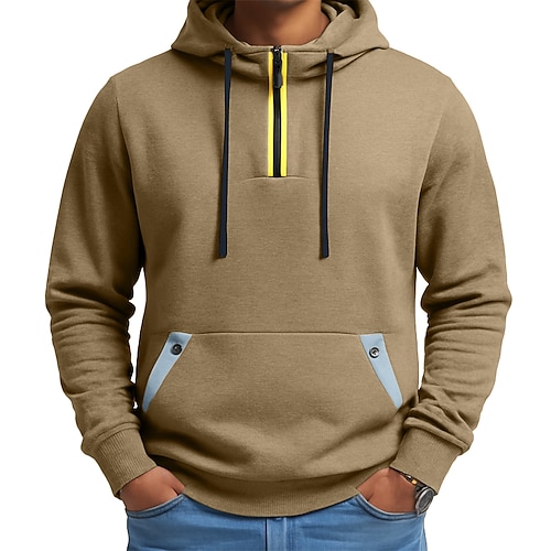 Per uomo Felpa con cappuccio Felpa con cappuccio e zip corta Felpa con cappuccio in pile Felpa con cappuccio tattica Nero Verde militare Blu marino Cachi Grigio chiaro Con Cappuccio Semplice Cerniera