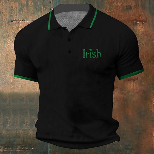 Per uomo Trifoglio Lettera Magliette Polo a Nido d'Ape Manica Corta Magliette polo Camicie con Colletto Casual Business Casual Abbigliamento da sera Abbigliamento Quotidiano Abito da festa Stampa 3D