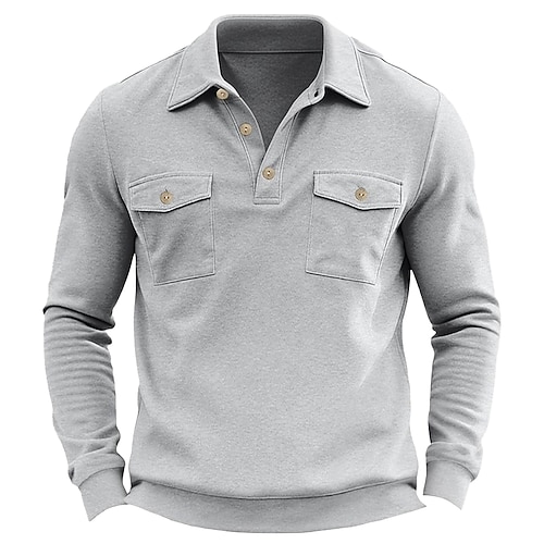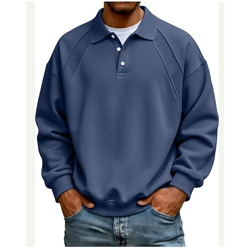 Per uomo Polo Maglia da golf Affari Casuale Colletto Polo a Coste Manica Lunga Moda Essenziale Tinta unica Bottoni Tasca Frontale Primavera Autunno Tutte le stagioni Vestibilità regolare Blu denim