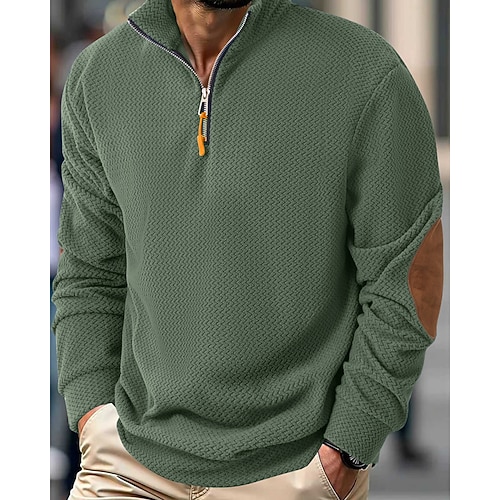 Per uomo Magliette Polo a Nido d'Ape Polo Abbigliamento quotidiano Data Zip a un quarto Manica Lunga Moda Essenziale Semplice Cerniera Primavera Autunno Vestibilità regolare Nero Bianco Vino Cachi