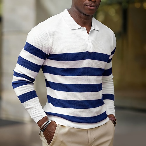 Per uomo Strisce orizzontali Magliette Polo a Nido d'Ape Polo da rugby Testurizzato Manica Lunga Magliette polo Bavero Abbigliamento Sportivo Casual Scuola Athleisure Abbigliamento quotidiano Stampa