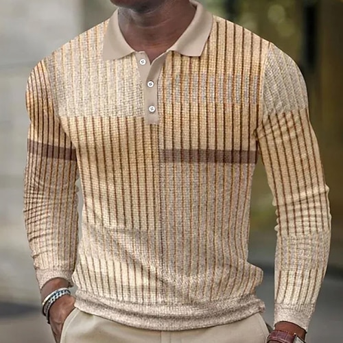 Per uomo A righe Polo da Rugby Manica Lunga Magliette polo Colletto Business Casual Formale All'aperto Abbigliamento Quotidiano Stampa 3D Bottoni Primavera Autunno Inverno Blu Verde Verde militare