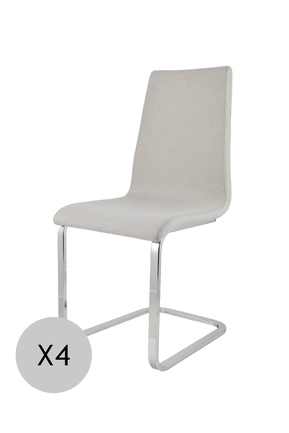 Set 4 Sedie in acciaio imbottite rivestite in tessuto grigio perla
