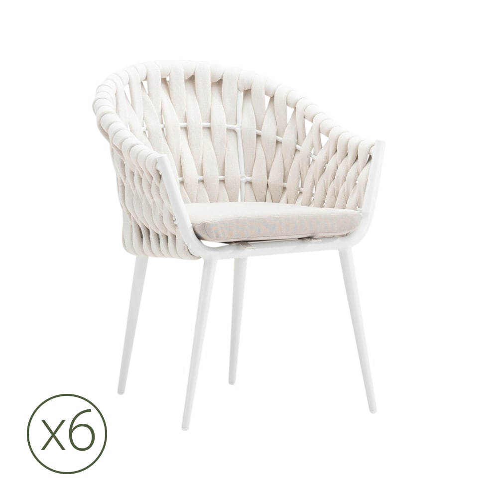 Set di 6 sedie in textilene blu e alluminio bianco