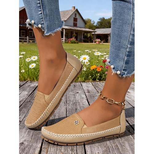 mocassini slip-on da donna con fiore decorativo – mocassini morbidi e comodi per le uscite quotidiane, casual e le passeggiate rilassanti