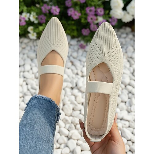 ballerine Mary Jane da donna in maglia marrone chiaro con punta a punta – scarpe slip-on traspiranti con cinturino elastico per camminare, ufficio e moda primaverile