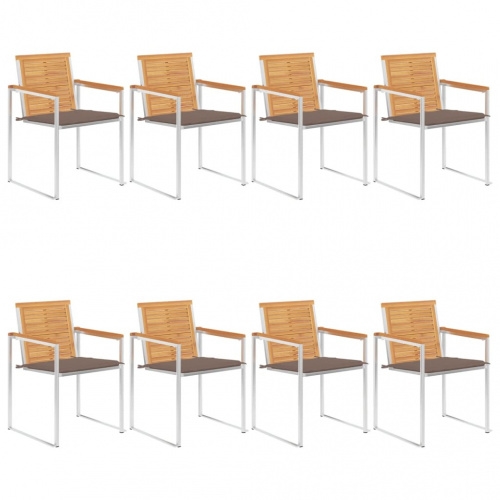 Gartenstühle Massivholz Teak und Edelstahl V1| vidaXL : Farbe - Taupe, Größe - 8 Stk.
