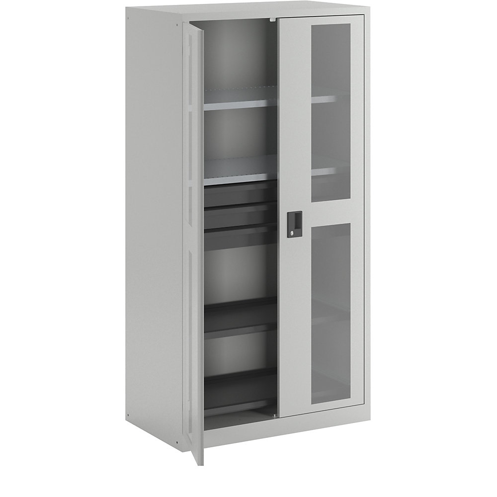 Sichtfenster-Flügeltürschrank, mit 2 Fachböden, HxBxT 1016 x 950 x 500 mm, lichtgrau/anthrazitgrau mauser